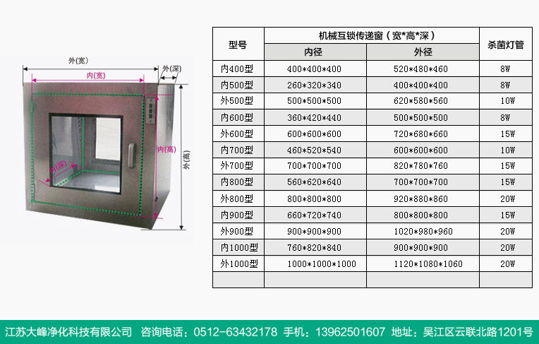 传递窗内装有紫外线灯管,供物品在传递时杀菌之用,窗口上装有玻璃,便于观察,窗装有密封条,确保窗门密封良好。